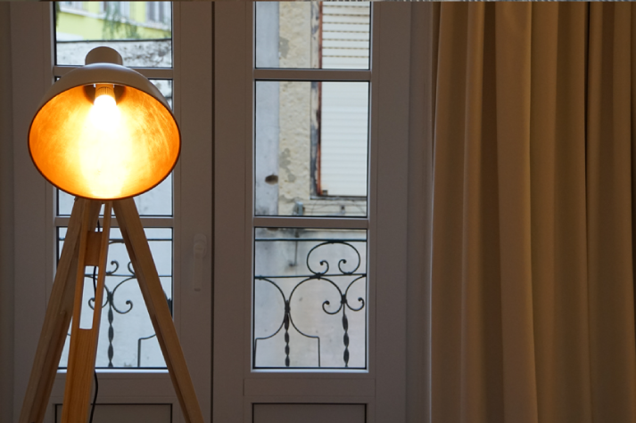 L'appartement T2 Alma Moura GRAÇA a une empreinte particulièrement lisboète qui lui est donnée par la décoration inspirée par un panneau d'azulejo.